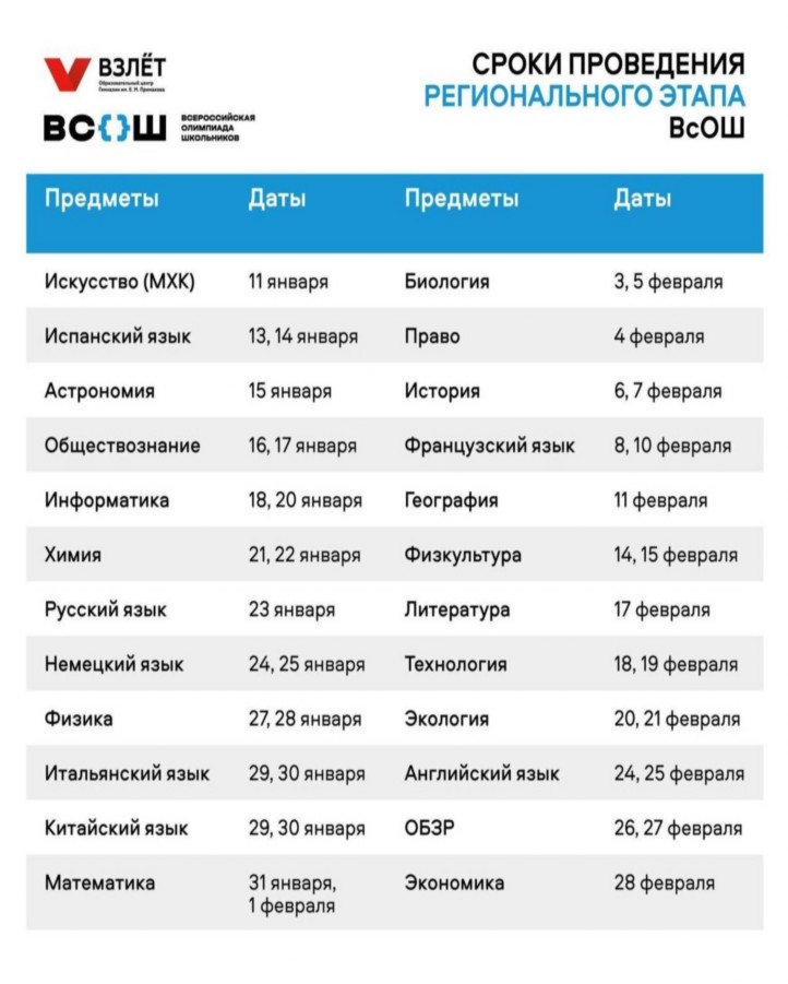 в 2024-2025 уч. году можно посмотреть на сайте образовательного центра "Взлет"